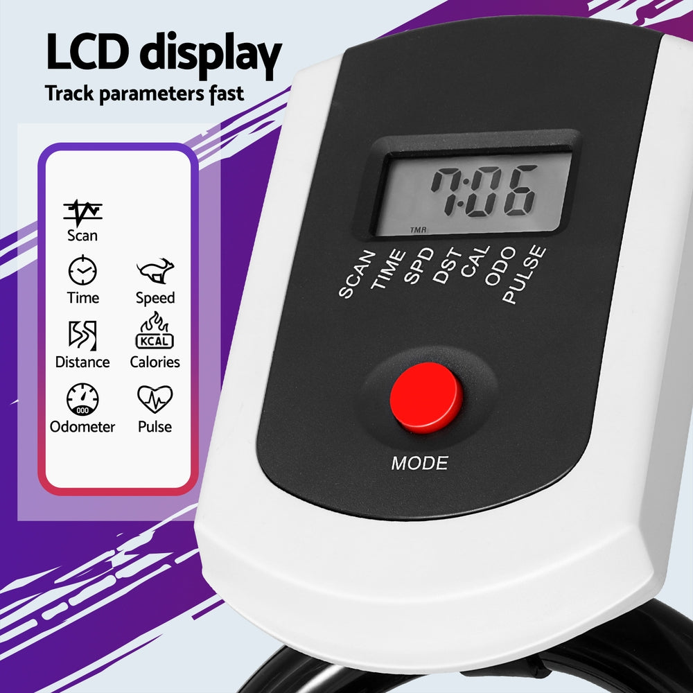Unleash your fitness potential with our Everfit Spin Bike. It's engineered with a heavy flywheel for a smooth, realistic riding experience and variable resistance to challenge all fitness levels. The bike features a comfortable, adjustable seat and handlebars, and a digital monitor for tracking speed, time, calorie burn, and heart rate. Its compact size ensures easy storage. Perfect for high-intensity cardio, this bike brings the energy of a spin class right into your home.