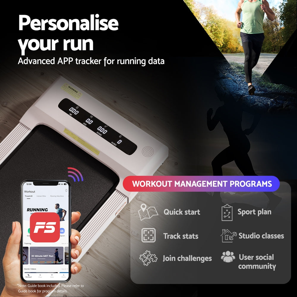 For a truly effective approach to weight loss and toning, our Everfit Walking Pad is your perfect companion. Compact and sturdy, the walking pad allows you to perform essential cardio exercises within the comfort of your home. It is foldable, easy to move, and comes ready to hit the ground running – no assembly required. Controlled by either the companion app or remote control, set up speeds of between 1km/h and 10km/h and monitor speed, time, distance and calories. Its powerful and energy-efficient motor produces smooth and seamless operation and the anti-slip belt phone holder makes your session a comfortable and controlled experience. The running belt uses an enhanced shock control system to help reduce the risk of joint injury, making the walking pad suitable for adults and seniors. When all the hard work is done, easily fold and store away the compact walking pad. Other great features include smooth wheels for easy mobility and Bluetooth speakers for entertainment while exercising. For health results that matter, our fitness walking pad is the one to run to.